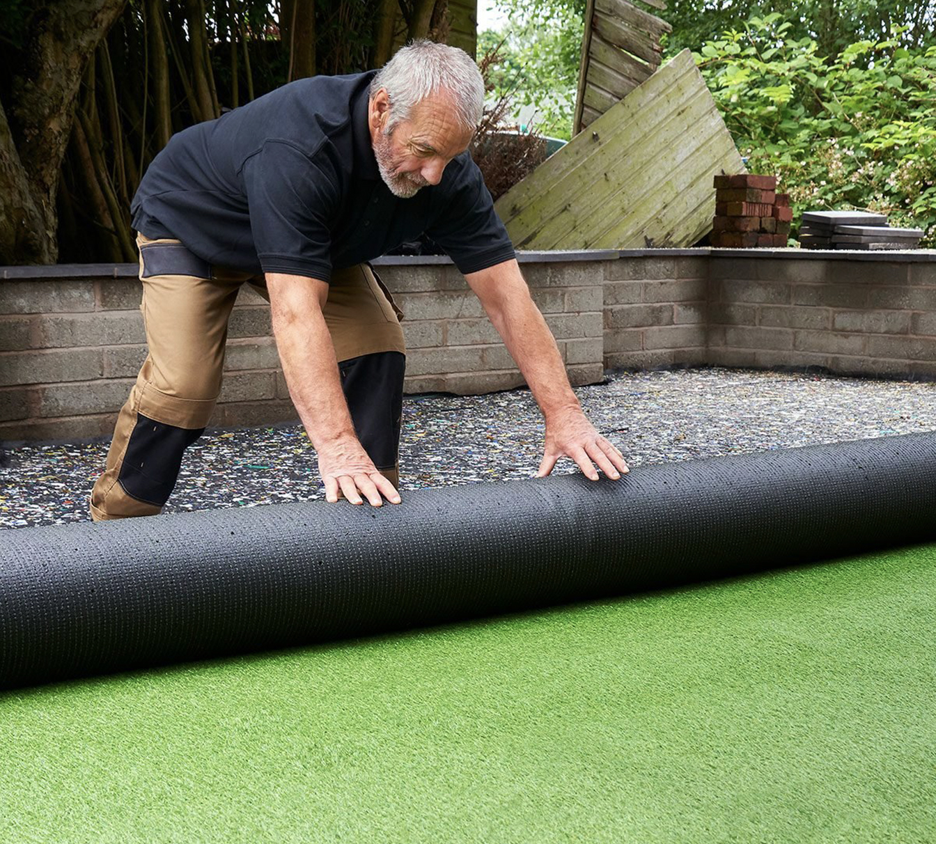 5. A weed control fabric is laid over this to protect the groundwork, and finally, your chosen grass is rolled out, cut to shape, secured, and brushed to perfection.